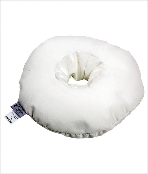 Pernă cu husă textilă, umplută cu perle de polistiren, care permit circulaţia aerului.